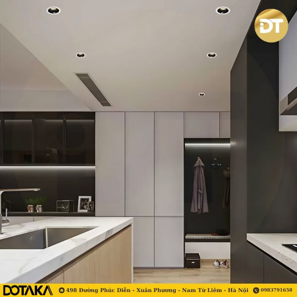- Showroom và cửa hàng: Đèn spotlight âm trần chóa đen lý tưởng để làm nổi bật các sản phẩm trưng bày như quần áo, đồ trang sức, hoặc nội thất.
